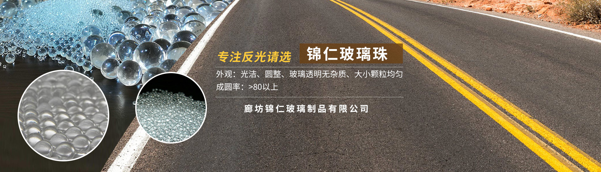 廊坊錦仁玻璃制品有限公司是專注生產經營玻璃微珠系列產品。工廠成立于1998年,現下設永清、山東、大慶3個生產分廠,具有5條國內成熟的流水線,年生產玻璃微珠30000噸。公司地理位置優越,北距首都北京60公里,距首都機場80公里;東距天津60公里,距天津新港100公里。